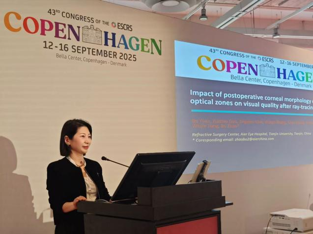 近日,全球眼科领域顶尖学术盛会——第43届欧洲白内障与屈光外科医师学会(ESCRS 2025)大会,于2025年9月12—16日在丹麦哥本哈根隆重召开。bv伟德国际1946赵波院长和袁博(博士后)受邀出席,并携两项屈光手术领域重要研究成果精彩亮相。 作为1991年成立、覆盖130国超7500名成员的国际权威学术组织,ESCRS大会是眼前节手术领域的“风向标”,以学术标准严格、前沿成果集中著称。本届会议聚焦白内障防治、近视手术技术革新、老视治疗等热点议题,为各地眼科领域专业人士,提供了交流最新研究成果、行业产品,以及与全球同行建立联系的机会。